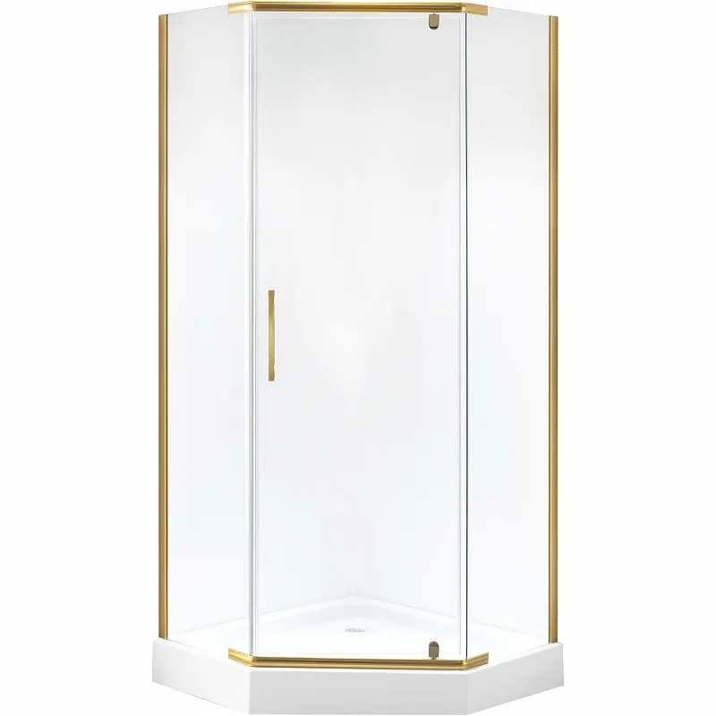 Душевой уголок Niagara Nova 100х100 NG-6434-08 GOLD.Характеристики: Цвет профиля: желтое золото. Материал профиля: алюминий. Материал полотна двери: закаленное стекло. Исполнение полотна двери: прозрачное стекло толщиной 6 мм. Размеры (ШхВхД): 1010x1900х1010 мм. Размеры с диапазоном регулировок (ШхД): 990-1010x990-1010 мм. Ширина входа: 520 мм. Вход: спереди. Количество секций двери: 1. Конструкция дверей: распашная. Форма: призма. Ориентация: универсальная. Монтаж: пристенный в угол. Установка: на поддон, на пол. В комплекте поставки: Душевой уголок.