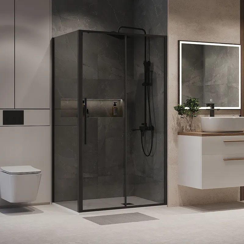 - Стильный дизайн: Черный матовый профиль и тонированное стекло создают современный и изысканный вид.