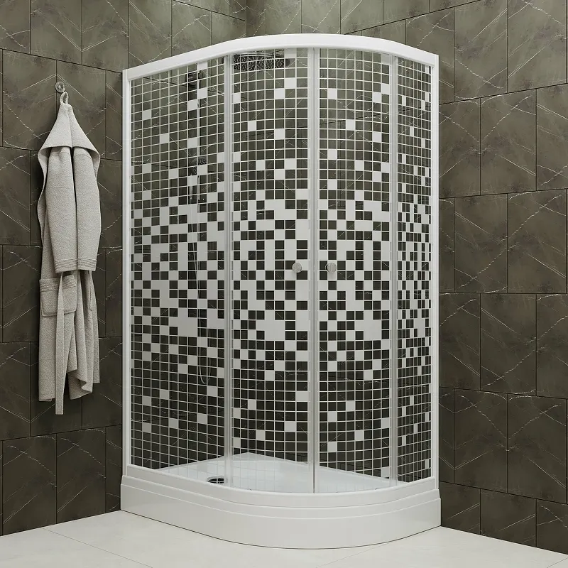 - Элегантный дизайн: Белый алюминиевый профиль и прозрачное стекло с узором добавят изысканности интерьеру.
