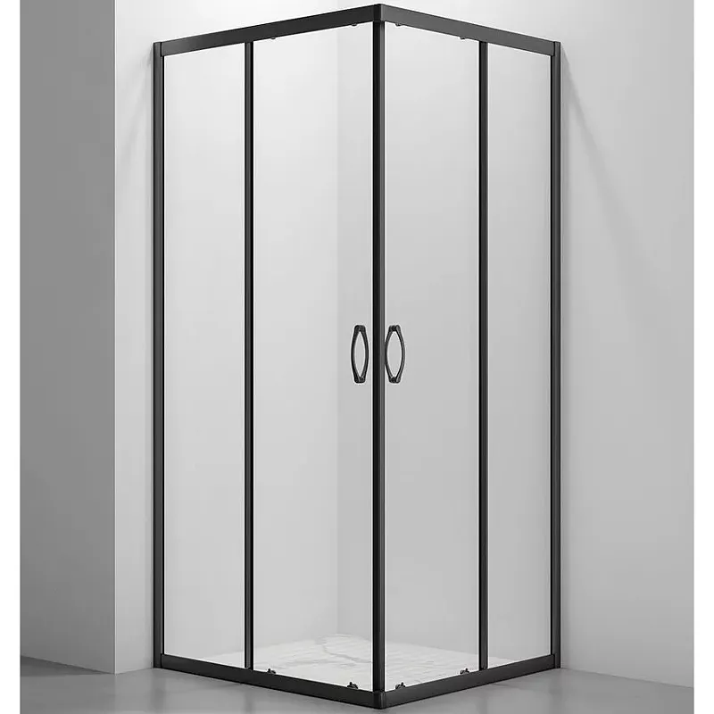Душевой уголок Veconi Rovigo RV-101B 80х80 RV101B-80-01-C5.Характеристики: Цвет профиля: черный матовый. Материал профиля: анодированный алюминий. Материал полотна двери: закаленное стекло. Исполнение полотна двери: прозрачное стекло толщиной 4 мм. Размеры (ШхВхД): 790x1900х790 мм. Размеры с диапазоном регулировок (ШхД): 780-790х780-790 мм. Ширина входа: 440 мм. Вход: спереди. Количество секций двери: 2. Конструкция дверей: раздвижная. Форма: квадратная. Магнитные уплотнители обеспечивают герметичное закрывание двери, плотно прилегая к профилю. Регулируемые верхние двойные ролики и одинарные нижние. Двусторонняя ручка-скоба из ABS пластика. Ориентация: универсальная. Монтаж: пристенный в угол. Установка: на поддон, на пол. В комплекте поставки: Душевой уголок.
