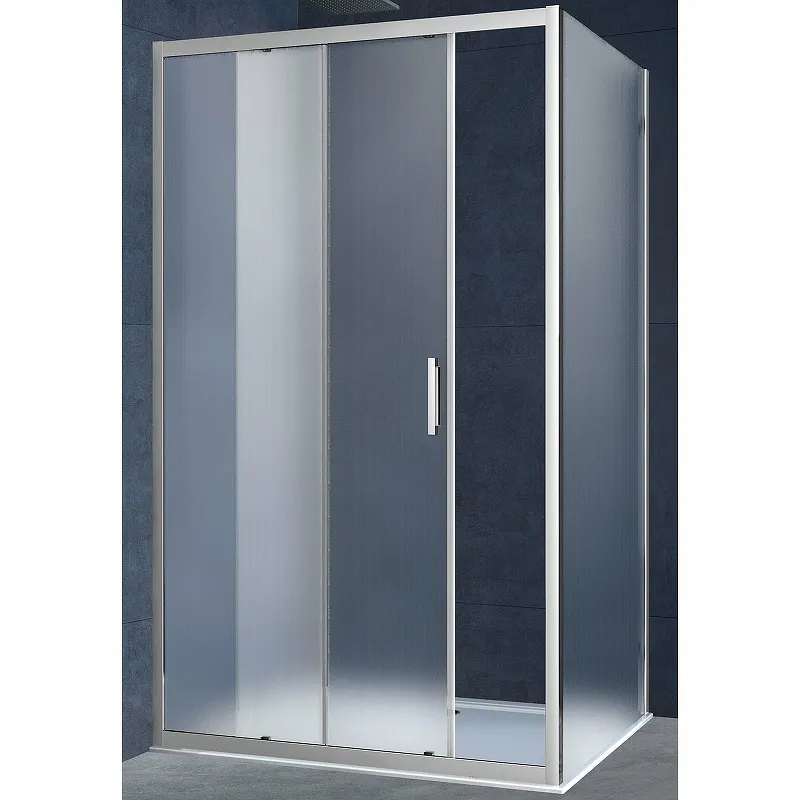 - Элегантный дизайн: Хромированный профиль и текстурное стекло добавляют современный акцент в вашу ванную комнату.