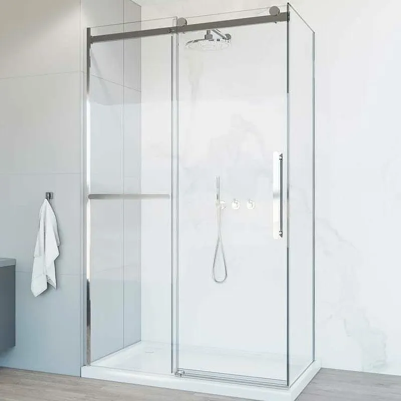 - Раздвижные двери: Конструкция с одной секцией и доводчиками обеспечивает плавное и бесшумное закрытие, экономя место в ванной.
