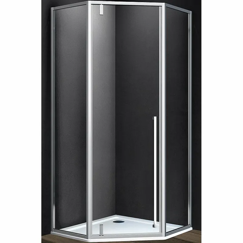 Душевой уголок Vincea Penta 100х100 VSP-3P100CL.Характеристики: Цвет профиля: хром. Материал профиля: анодированный алюминий. Материал полотна двери: закаленное стекло. Исполнение полотна двери: прозрачное стекло толщиной 6 мм. Размеры (ШхВхД): 1000x1950х1000 мм. Размеры с диапазоном регулировок (ШхД): 985-1000 x 985-1000 мм. Ширина входа: 490 мм. Количество секций двери: 1. Конструкция дверей: распашная. Форма: призма. Монтаж: пристенный в угол. Установка: на поддон, на пол. Удлиненная ручка из нержавеющей стали. Защитное покрытие стекла Easy Clean (благодаря водоотталкивающим свойствам капли воды не удерживаются на поверхности стекла и быстро стекают, не оставляя следов). В комплекте поставки: Душевой уголок.