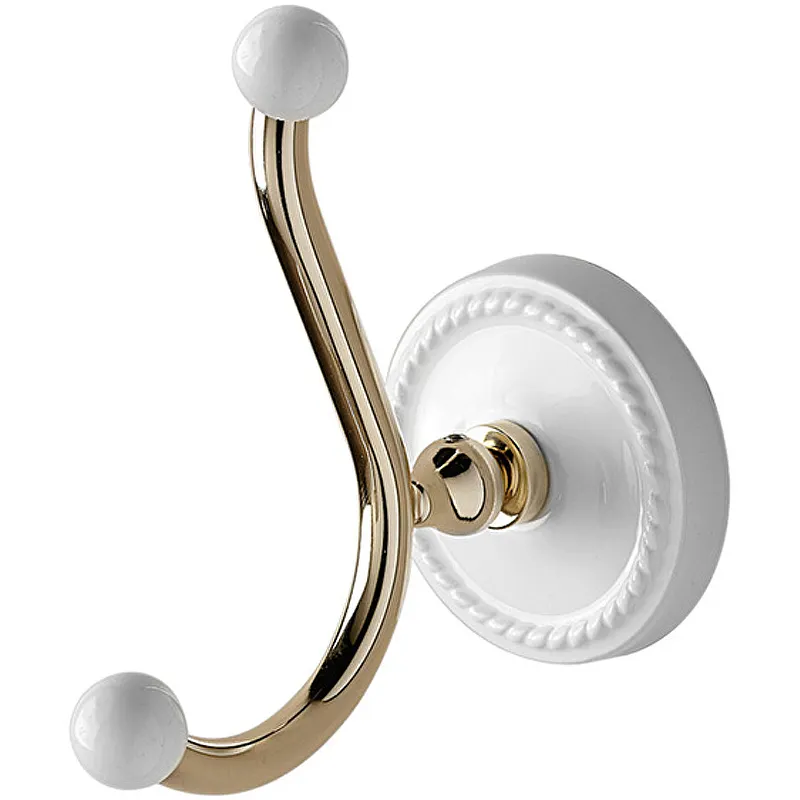 Двойной крючок Devon&Devon Dorothy DOR413OT.Характеристики: Цвет: светлое золото, белый. Материал: латунь, керамика. Метод крепления: шурупы. Монтаж: подвесной. В комплекте поставки: двойной крючок, крепления.
