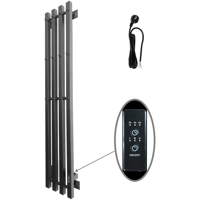 - Эффективный обогрев: Электрический полотенцесушитель мощностью 76 Вт быстро нагревает помещение за 30 минут.