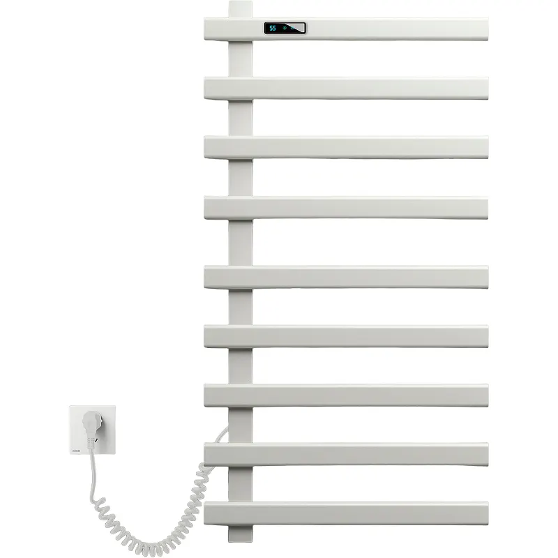Электрический полотенцесушитель Black&White N-355W 48x92 355WI.Характеристики: Цвет: белый матовый. Материал: нержавеющая сталь SUS 304. Материал нагревательного элемента: углеродное волокно. Размер (ШхВхГ): 480х920х50 мм. Количество перекладин: 9. Форма: лесенка. Мощность: 128 Вт. Температура нагрева: 45-60 градусов Цельсия. Напряжение: 220-240 V, 50 Гц. Вкл/выкл переключатель: индикатор с сенсорным управлением. Класс защиты: IPX4. Витой шнур длиной 450 мм (слева), с вилкой. Монтаж: подвесной. В комплекте поставки: Полотенцесушитель.