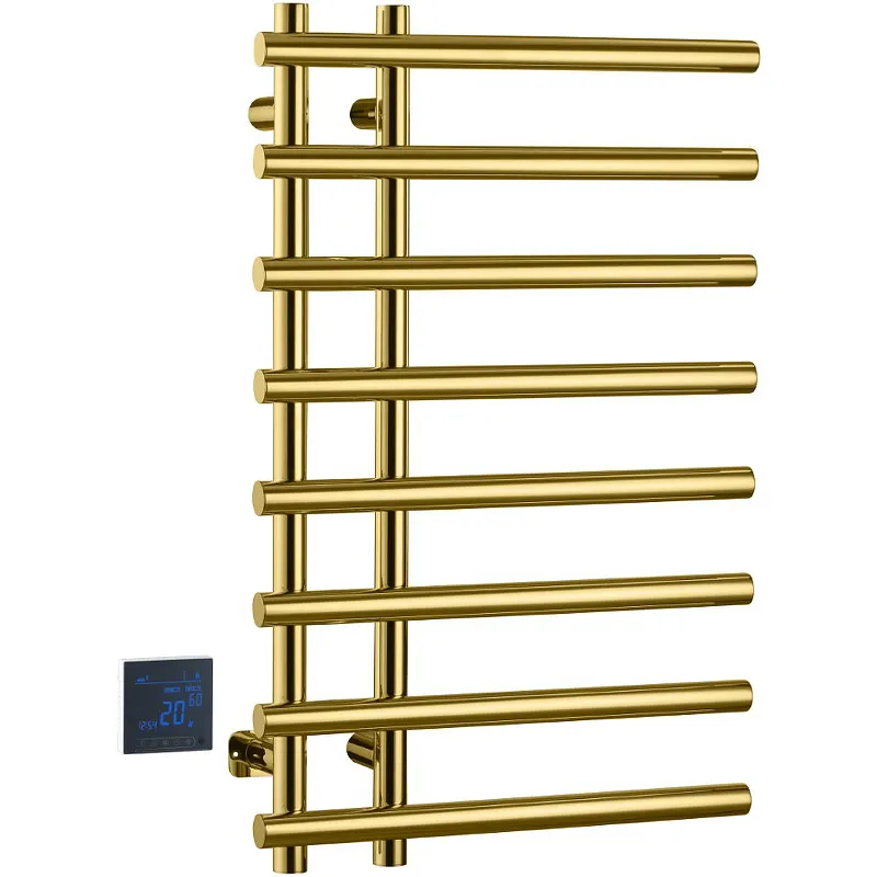 Электрический полотенцесушитель Boheme Uno 722-G.Характеристики: Цвет: золото. Материал: сталь. Размер (ШхВхГ): 50х80х11,8 см. Количество перекладин: 8. Форма: лесенка. Управление: электронное. Монтаж: подвесной. В комплекте поставки: Полотенцесушитель. Панель управления.