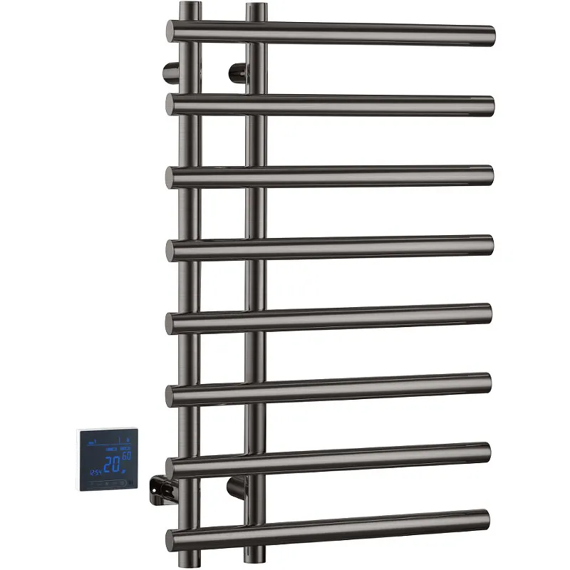 Электрический полотенцесушитель Boheme Uno 722-GM.Характеристики: Цвет: оружейная сталь. Материал: сталь. Размер (ШхВхГ): 50х80х11,8 см. Количество перекладин: 8. Форма: лесенка. Управление: электронное. Монтаж: подвесной. В комплекте поставки: Полотенцесушитель. Панель управления.