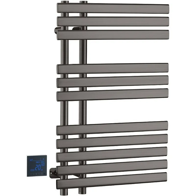 Электрический полотенцесушитель Boheme Venturo 723-GM.Характеристики: Цвет: оружейная сталь. Материал: сталь. Размер (ШхВхГ): 500х800х118 мм. Количество перекладин: 11. Форма: лесенка. Теплоноситель: сухой. Управление: электронное. Монтаж: подвесной. В комплекте поставки: Полотенцесушитель. Панель управления.