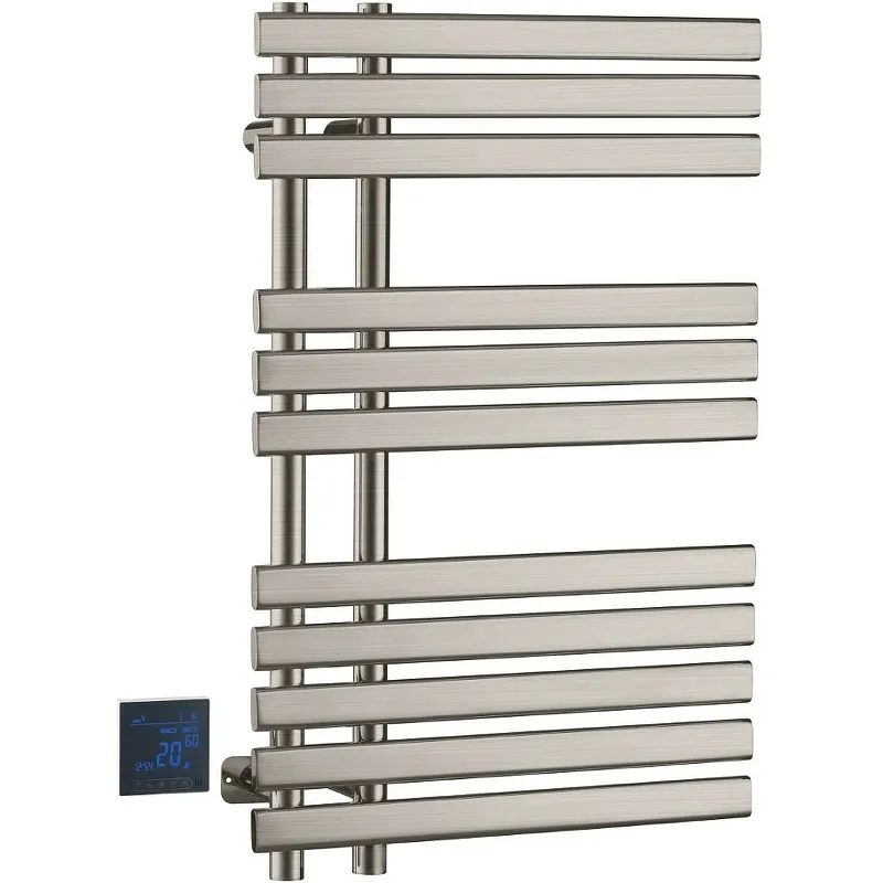Электрический полотенцесушитель Boheme Venturo 723-NB.Характеристики: Цвет: никель. Материал: сталь. Размер (ШхВхГ): 500х800х118 мм. Количество перекладин: 11. Теплоноситель: сухой. Форма: лесенка. Управление: электронное. Монтаж: подвесной. В комплекте поставки: Полотенцесушитель. Панель управления.