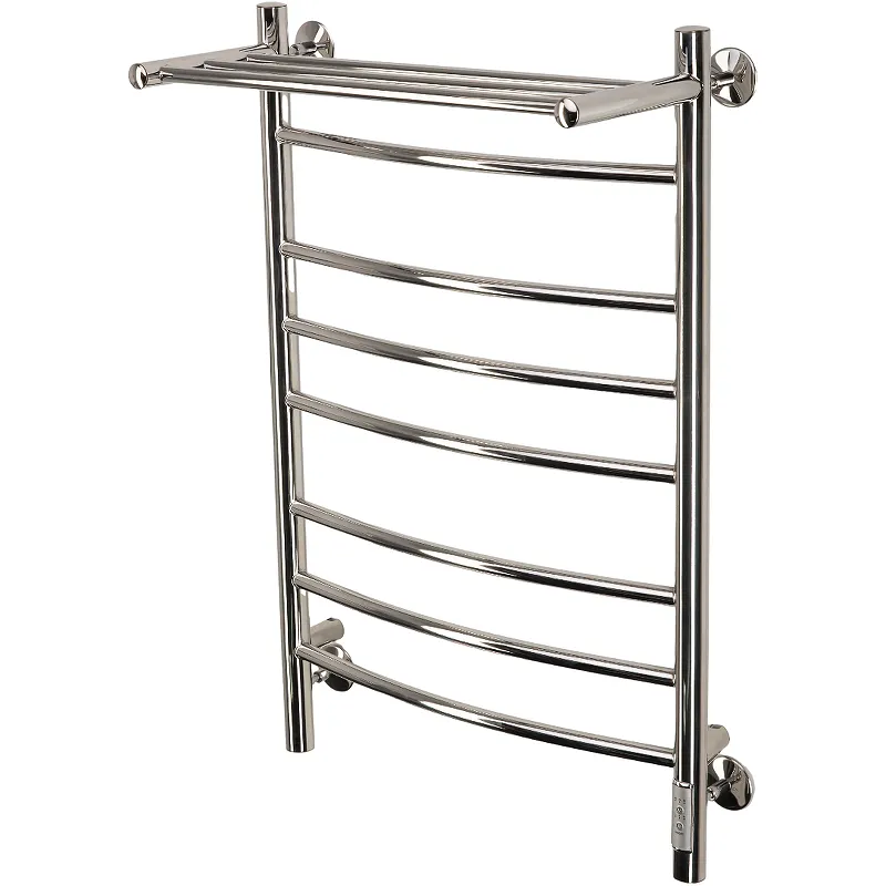 - Электрический полотенцесушитель с полочкой идеально подходит для компактного размещения дополнительных принадлежностей.