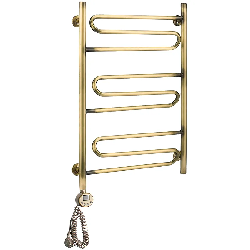 Электрический полотенцесушитель Domoterm Офелия П9 500x700 АБР EL Античная бронза — это идеальное решение для вашего дома. Этот электрический полотенцесушитель с современным дизайном, выполненный из качественной латуни марки Л59, станет стильным дополнением вашей ванной комнаты. Полотенцесушитель Domoterm не только удобен в использовании, но и обеспечивает эффективный обогрев, благодаря мощности в 300 Вт и наличию цифрового терморегулятора, который регулирует температуру от 35 до 70 градусов.