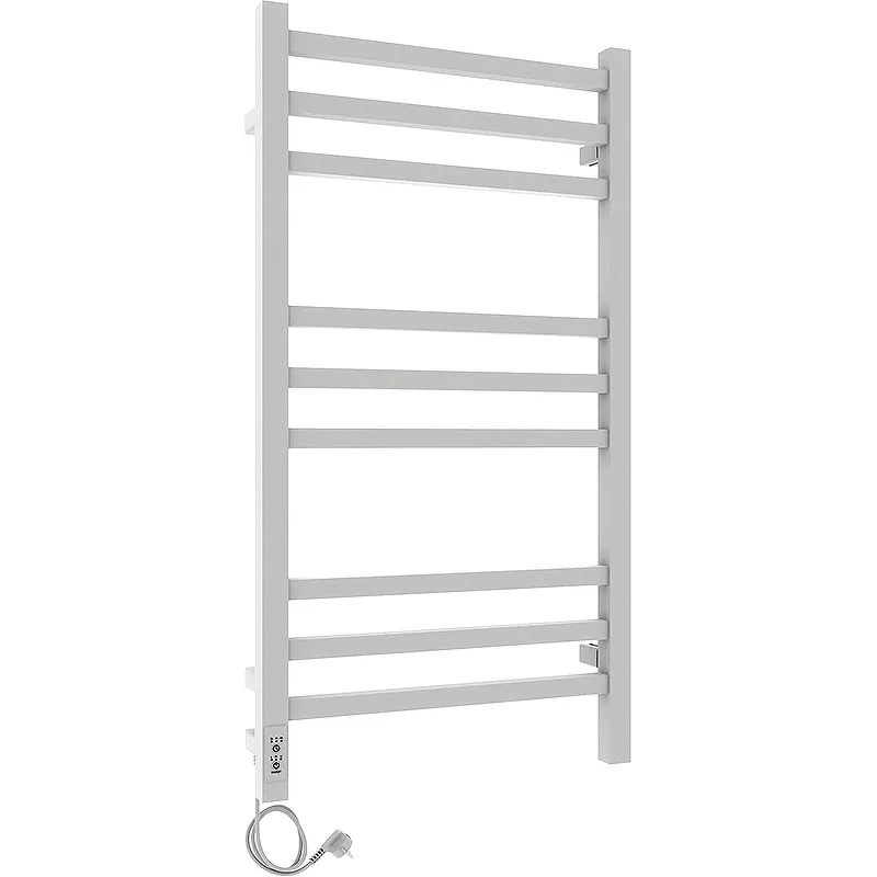 Электрический полотенцесушитель Laris Астор ЧК9 350х700 L 73207769.Характеристики: Цвет: белый муар. Материал: сталь. Покрытие: краска порошковая белая RAL 9016 (белый матовый муар). Форма: лесенка. Количество перекладин: 9. Форма профиля: квадратная. Мощность: 130 Вт. Напряжение: 220 В. Частота тока: 50Гц. Температура поверхности изделия: 50 C. С терморегулятором. С таймером. С возможностью скрытого монтажа. Регулятор: на стойке (программируемый регулятор). Размещение шнура: слева. Диаметры и толщина: стойка 30х30, толщина 1,5 мм; перемычка профиль 20х20, толщина 1,5 мм. В комплекте поставки: Полотенцесушитель. Модуль скрытого монтажа. Крепление (шуруп оцинкованный с дюбелем, пластиковое крепление, резьбовая втулка, штифт) - 4 шт. Ключ шестигранный. Паспорт. Упаковка (короб картонный, чехол полиэтиленовый, чехол полиэтиленовый для крепления, коробочка для креплений).