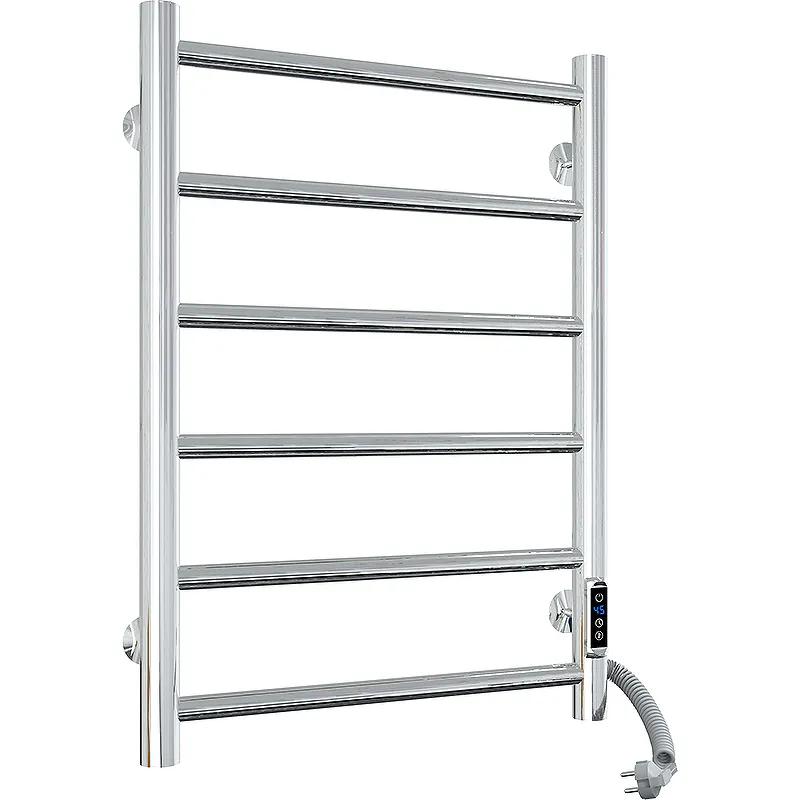 Электрический полотенцесушитель Laris Джаз П6 400x600 R 73207470.Характеристики: Цвет: хром. Материал: сталь нержавеющая AISI304. Форма: лесенка. Количество перекладин: 6. Форма профиля: круглая. Мощность: 95 Вт. Напряжение: 220 В. Температура поверхности изделия: 50 C. С терморегулятором. С таймером. Регулятор: на стойке (программируемый регулятор с таймером). Размещение шнура: справа. Диаметры и толщина: стойка d=32, толщина 1,5мм; перемычка d=20, толщина 1,5 мм. В комплекте поставки: Полотенцесушитель. Крепление (шуруп оцинкованный с дюбелем, пластиковое крепление, резьбовая втулка, штифт) - 4 шт. Ключ шестигранный. Паспорт. Упаковка (короб картонный, чехол полиэтиленовый, чехол полиэтиленовый для крепления, коробочка для креплений).