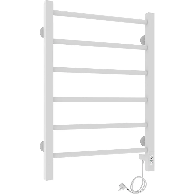 Электрический полотенцесушитель Laris Феличия ЧК6 400х600 R 73207588.Характеристики: Цвет: белый муар. Материал: сталь. Покрытие: краска порошковая белая RAL 9016 (белый матовый муар). Форма: лесенка. Количество перекладин: 6. Форма профиля: квадратная, круглая. Мощность: 115 Вт. Напряжение: 220 В. Частота тока: 50Гц. Температура поверхности изделия: 50 C. С терморегулятором. С таймером. С возможностью скрытого монтажа. Регулятор: на стойке (программируемый регулятор). Размещение шнура: справа. Диаметры и толщина: стойка d=32, толщина 1,5мм; перемычка d=20, толщина 1,5 мм. В комплекте поставки: Полотенцесушитель. Модуль скрытого монтажа. Крепление (шуруп оцинкованный с дюбелем, пластиковое крепление, резьбовая втулка, штифт) - 4 шт. Ключ шестигранный. Паспорт. Упаковка (короб картонный, чехол полиэтиленовый, чехол полиэтиленовый для крепления, коробочка для креплений).