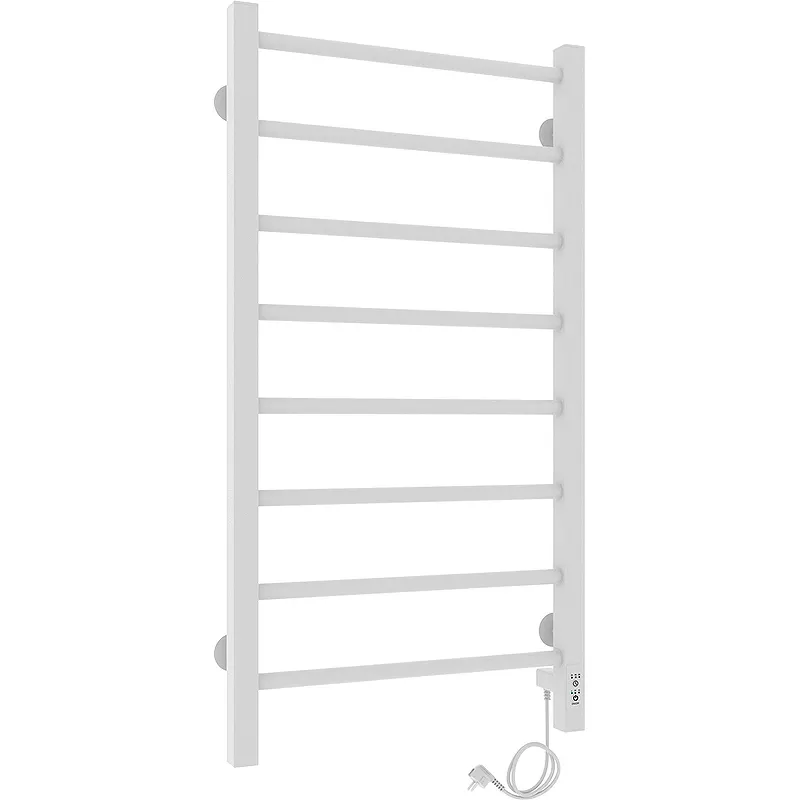 Электрический полотенцесушитель Laris Феличия ЧК8 400х800 R 73207590.Характеристики: Цвет: белый муар. Материал: сталь. Покрытие: краска порошковая белая RAL 9016 (белый матовый муар). Форма: лесенка. Количество перекладин: 8. Форма профиля: квадратная, круглая. Мощность: 155 Вт. Напряжение: 220 В. Частота тока: 50Гц. Температура поверхности изделия: 50 C. С терморегулятором. С таймером. С возможностью скрытого монтажа. Регулятор: на стойке. Размещение шнура: справа. Диаметры и толщина: стойка 30х30, толщина 1,5 мм; перемычка d=20, толщина 1,5 мм. В комплекте поставки: Полотенцесушитель. Модуль скрытого монтажа. Крепление (шуруп оцинкованный с дюбелем, пластиковое крепление, резьбовая втулка, штифт) - 4 шт. Ключ шестигранный. Паспорт. Упаковка (короб картонный, чехол полиэтиленовый, чехол полиэтиленовый для крепления, коробочка для креплений).