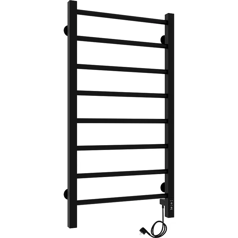 Электрический полотенцесушитель Laris Феличия ЧКЧ8 400х800 R 73207613.Характеристики: Цвет: черный муар. Материал: сталь. Покрытие: краска порошковая черная RAL 9005 (черный матовый муар). Форма: лесенка. Количество перекладин: 8. Форма профиля: квадратная, круглая. Мощность: 155 Вт. Напряжение: 220 В. Частота тока: 50Гц. Температура поверхности изделия: 50 C. С терморегулятором. С таймером. С возможностью скрытого монтажа. Регулятор: на стойке. Размещение шнура: справа. Диаметры и толщина: стойка 30х30, толщина 1,5 мм; перемычка d=20, толщина 1,5 мм. В комплекте поставки: Полотенцесушитель. Модуль скрытого монтажа. Крепление (шуруп оцинкованный с дюбелем, пластиковое крепление, резьбовая втулка, штифт) - 4 шт. Ключ шестигранный. Паспорт. Упаковка (короб картонный, чехол полиэтиленовый, чехол полиэтиленовый для крепления, коробочка для креплений).