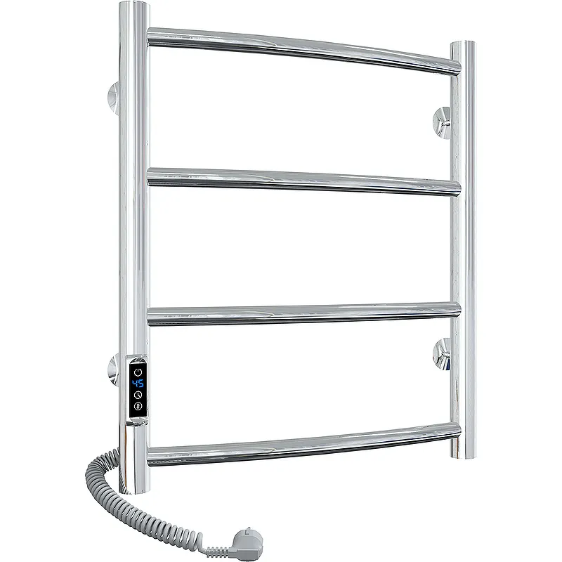 Электрический полотенцесушитель Laris Классик П4 400x500 L 73207640.Характеристики: Цвет: хром. Материал: сталь нержавеющая AISI304. Форма: лесенка. Количество перекладин: 4. Форма профиля: круглая. Мощность: 61 Вт. Напряжение: 220 В. Температура поверхности изделия: 50 C. С терморегулятором. С таймером. Регулятор: на стойке (программируемый регулятор). Размещение шнура: слева. Диаметры и толщина: стойка d=32, толщина 1,5мм; перемычка d=20, толщина 1,5 мм. В комплекте поставки: Полотенцесушитель. Крепление (шуруп оцинкованный с дюбелем, пластиковое крепление, резьбовая втулка, штифт) - 4 шт. Ключ шестигранный. Паспорт. Упаковка (короб картонный, чехол полиэтиленовый, чехол полиэтиленовый для крепления, коробочка для креплений).