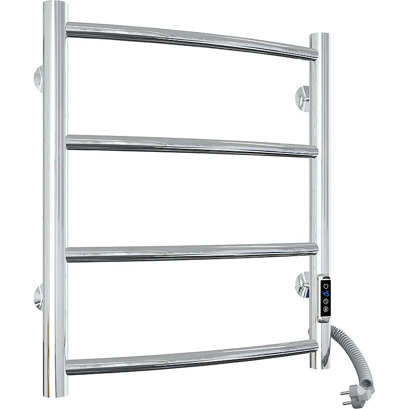 Электрический полотенцесушитель Laris Классик П4 400x500 R 73207641.Характеристики: Цвет: хром. Материал: сталь нержавеющая AISI304. Форма: лесенка. Количество перекладин: 4. Форма профиля: круглая. Мощность: 61 Вт. Напряжение: 220 В. Температура поверхности изделия: 50 C. С терморегулятором. С таймером. Регулятор: на стойке (программируемый регулятор). Размещение шнура: справа. Диаметры и толщина: стойка d=32, толщина 1,5мм; перемычка d=20, толщина 1,5 мм. В комплекте поставки: Полотенцесушитель. Крепление (шуруп оцинкованный с дюбелем, пластиковое крепление, резьбовая втулка, штифт) - 4 шт. Ключ шестигранный. Паспорт. Упаковка (короб картонный, чехол полиэтиленовый, чехол полиэтиленовый для крепления, коробочка для креплений).