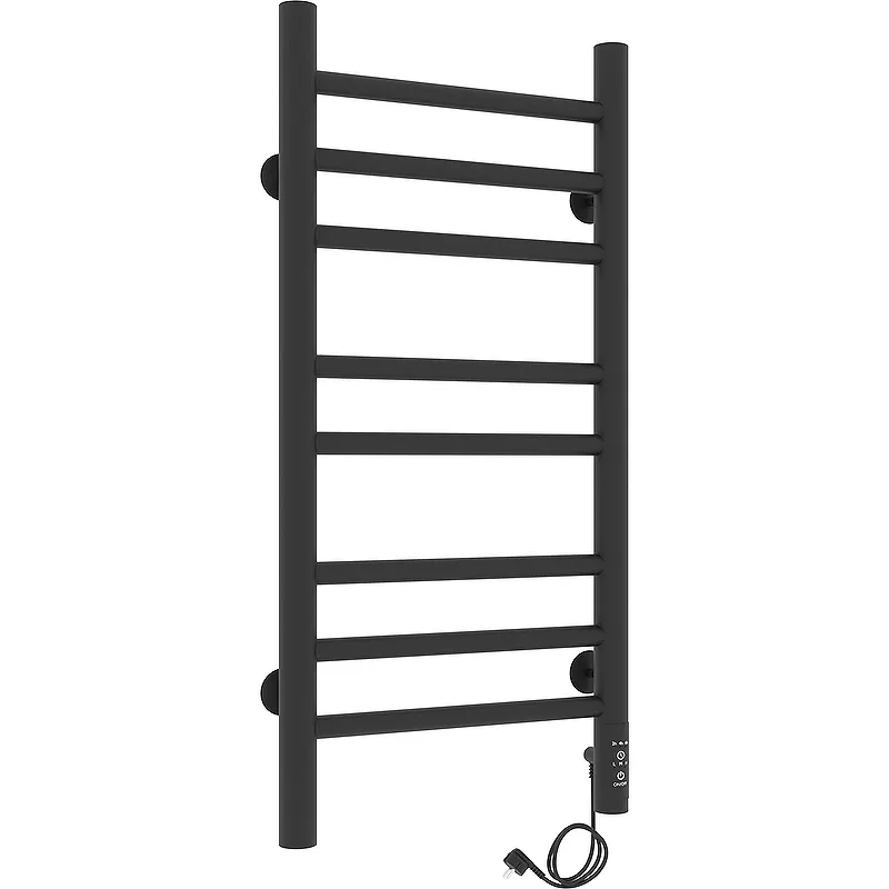 Электрический полотенцесушитель Laris Лаванда ЧКЧ П8 300х700 R 73207625.Характеристики: Цвет: черный муар. Материал: конструкционная сталь. Покрытие: краска порошковая белая RAL 9016 (белый матовый муар). Форма: лесенка. Количество перекладин: 3. Форма профиля: круглая. Мощность: 138 Вт. Напряжение: 220 В. Температура поверхности изделия: 50 C. С терморегулятором. С таймером. С возможностью скрытого монтажа. Регулятор: на стойке (программируемый регулятор). Размещение шнура: справа. Диаметры и толщина: стойка d=32, толщина 1,5 мм, ребра d=20, толщина 1,5 мм. В комплекте поставки: Полотенцесушитель. Модуль скрытого монтажа. Крепление (шуруп оцинкованный с дюбелем, пластиковое крепление, резьбовая втулка, штифт) - 4 шт. Ключ шестигранный. Паспорт. Упаковка (короб картонный, чехол полиэтиленовый, чехол полиэтиленовый для крепления, коробочка для креплений).