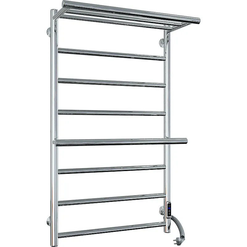 Электрический полотенцесушитель Laris Лавина П9 500x800 R 73207651 с полкой.Характеристики: Цвет: хром. Материал: нержавеющая сталь AISI 304. Покрытие: хром отполированный до зеркального блеска. Форма: лесенка. С полкой. Количество перекладин: 9. Форма профиля: круглая. Мощность: 145 Вт. Напряжение: 220 В. Температура поверхности изделия: 50-55 C. С терморегулятором. С таймером. Регулятор: на стойке. Размещение шнура: справа. Диаметры и толщина: стойка d=32, толщина 1,5 мм, перемычка d=20, толщина 1,5 мм. В комплекте поставки: Полотенцесушитель. Крепление (шуруп оцинкованный с дюбелем, пластиковое крепление, резьбовая втулка, штифт) - 4 шт. Ключ шестигранный. Паспорт. Упаковка (короб картонный, чехол полиэтиленовый, чехол полиэтиленовый для крепления, коробочка для креплений).