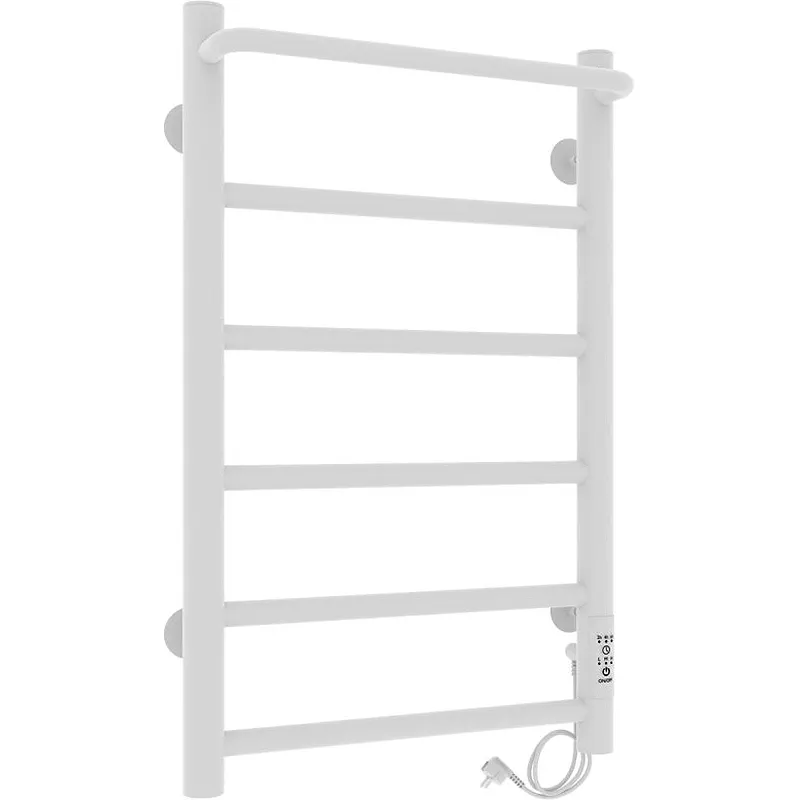 Электрический полотенцесушитель Laris Прайм ЧК П6 400x600 R 75201060.Характеристики: Цвет: белый муар. Материал: конструкционная сталь. Покрытие: краска порошковая белая RAL 9016 (белый матовый муар). Форма: лесенка. Количество перекладин: 6. Форма профиля: круглая. Мощность: 80 Вт. Напряжение: 220 В. Частота тока: 50Гц. Температура поверхности изделия: 50 C. С терморегулятором. С таймером. С возможностью скрытого монтажа. Регулятор: на стойке. Размещение шнура: справа. Диаметры и толщина: стойка d=32, толщина 1,5мм; перемычка d=20, толщина 1,5 мм. В комплекте поставки: Полотенцесушитель. Модуль скрытого монтажа. Крепление (шуруп оцинкованный с дюбелем, пластиковое крепление, резьбовая втулка, штифт) - 4 шт. Ключ шестигранный. Паспорт. Упаковка (короб картонный, чехол полиэтиленовый, чехол полиэтиленовый для крепления, коробочка для креплений).