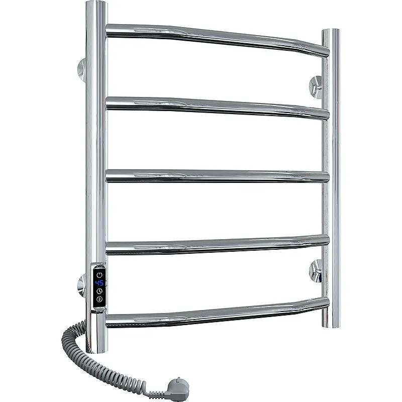 Электрический полотенцесушитель Laris Виктория П5 400x500 L 73207636.Характеристики: Цвет: хром. Материал: сталь нержавеющая AISI304. Форма: лесенка. Количество перекладин: 5. Форма профиля: круглая. Мощность: 74 Вт. Напряжение: 220 В. Температура поверхности изделия: 50 C. С терморегулятором. С таймером. Регулятор: на стойке (программируемый регулятор с таймером). Размещение шнура: слева. Диаметры и толщина: стойка d=32, толщина 1,5мм; перемычка d=20, толщина 1,5 мм. В комплекте поставки: Полотенцесушитель. Крепление (шуруп оцинкованный с дюбелем, пластиковое крепление, резьбовая втулка, штифт) - 4 шт. Ключ шестигранный. Паспорт. Упаковка (короб картонный, чехол полиэтиленовый, чехол полиэтиленовый для крепления, коробочка для креплений).