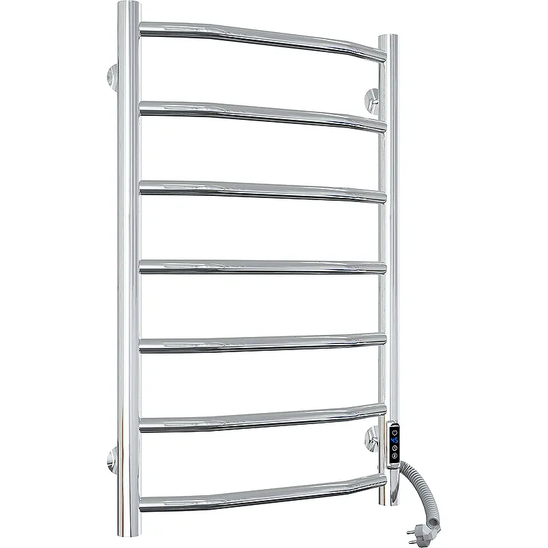 Электрический полотенцесушитель Laris Виктория П7 400x700 R 73207639.Характеристики: Цвет: хром. Материал: сталь нержавеющая AISI304. Форма: лесенка. Количество перекладин: 7. Форма профиля: круглая. Мощность: 103 Вт. Напряжение: 220 В. Температура поверхности изделия: 50 C. С терморегулятором. С таймером. Регулятор: на стойке (программируемый регулятор с таймером). Размещение шнура: справа. Диаметры и толщина: стойка d=32, толщина 1,5мм; перемычка d=20, толщина 1,5 мм. В комплекте поставки: Полотенцесушитель. Крепление (шуруп оцинкованный с дюбелем, пластиковое крепление, резьбовая втулка, штифт) - 4 шт. Ключ шестигранный. Паспорт. Упаковка (короб картонный, чехол полиэтиленовый, чехол полиэтиленовый для крепления, коробочка для креплений).