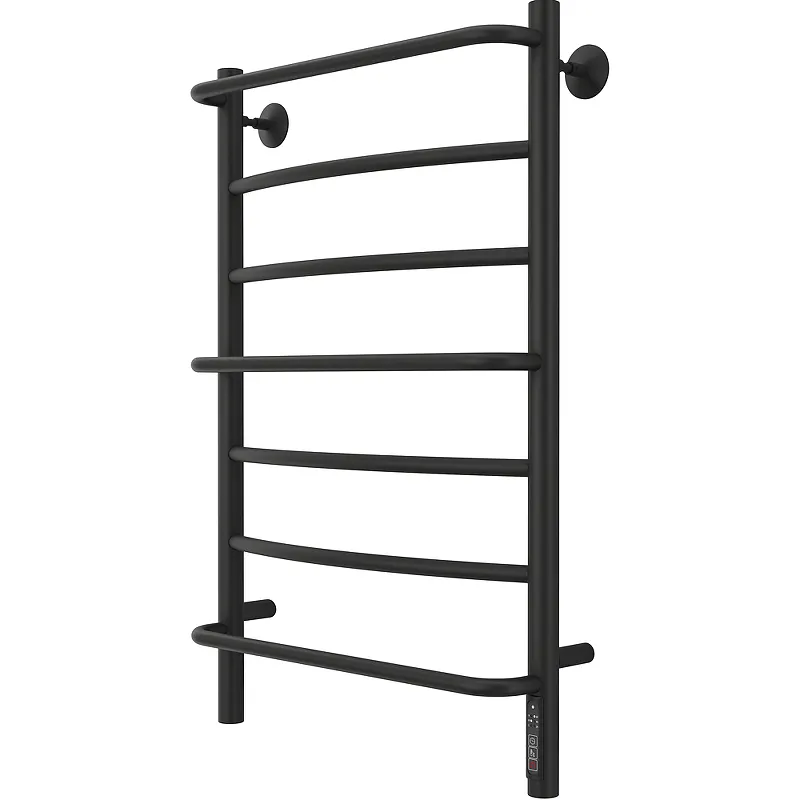 - Элегантный дизайн: Черный цвет и форма "лесенка" делают данный электрический полотенцесушитель подходящим для интерьеров в современном стиле.