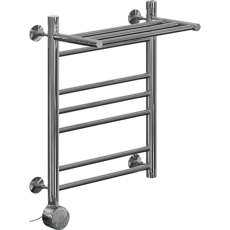 - Электрический полотенцесушитель с полкой: Удобная полочка позволяет разместить дополнительные аксессуары.