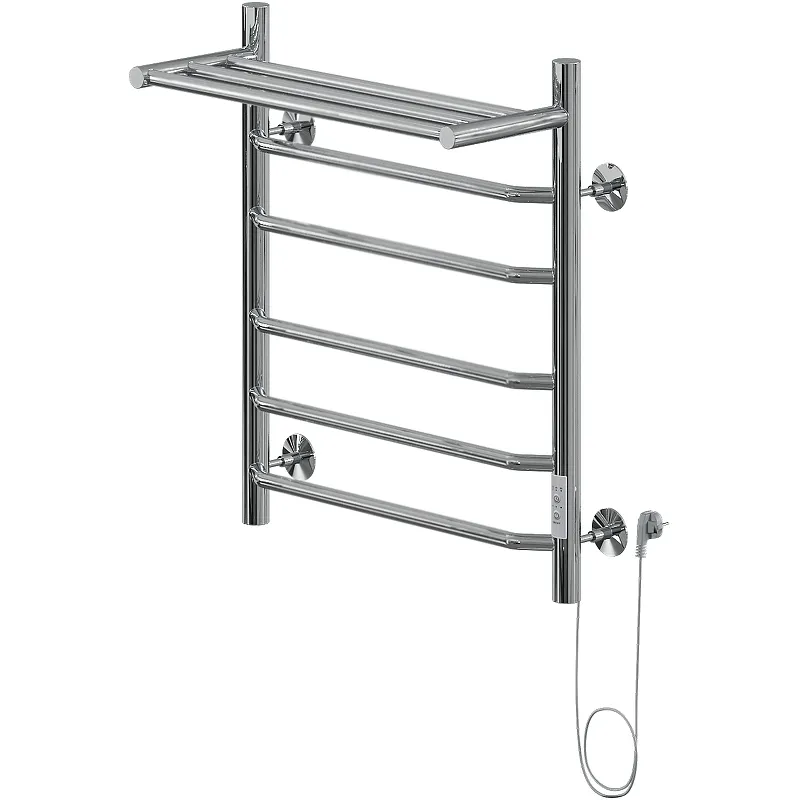Электрический полотенцесушитель Ника Way-3 60/50 с полкой — это идеальный выбор для современных ванных комнат. Изготовленный из нержавеющей стали, он обладает стильным хромированным покрытием, что делает его не только функциональным, но и эстетически привлекательным. Данный полотенцесушитель представлен в форме лесенки и оснащен восемью перекладинами, обеспечивая оптимальное размещение полотенец.