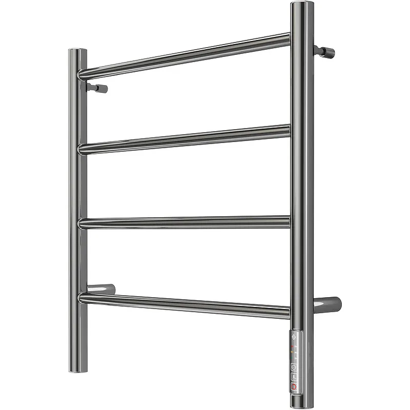 - Современный дизайн: Полотенцесушитель из нержавеющей стали с зеркальной хромированной отделкой.