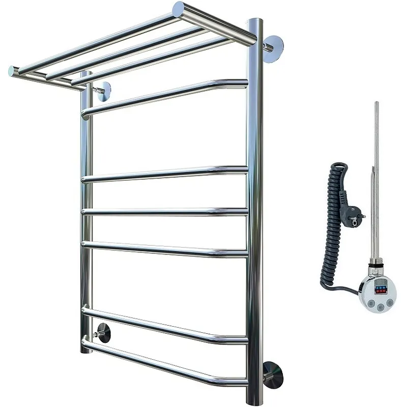 - Электрический полотенцесушитель с полочкой обеспечивает удобство в использовании, позволяя размещать дополнительные вещи.
