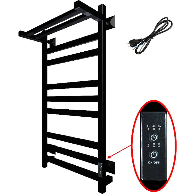 - Современный дизайн полотенцесушителя: Черный цвет и форма лесенка добавят стиль в ваш интерьер.