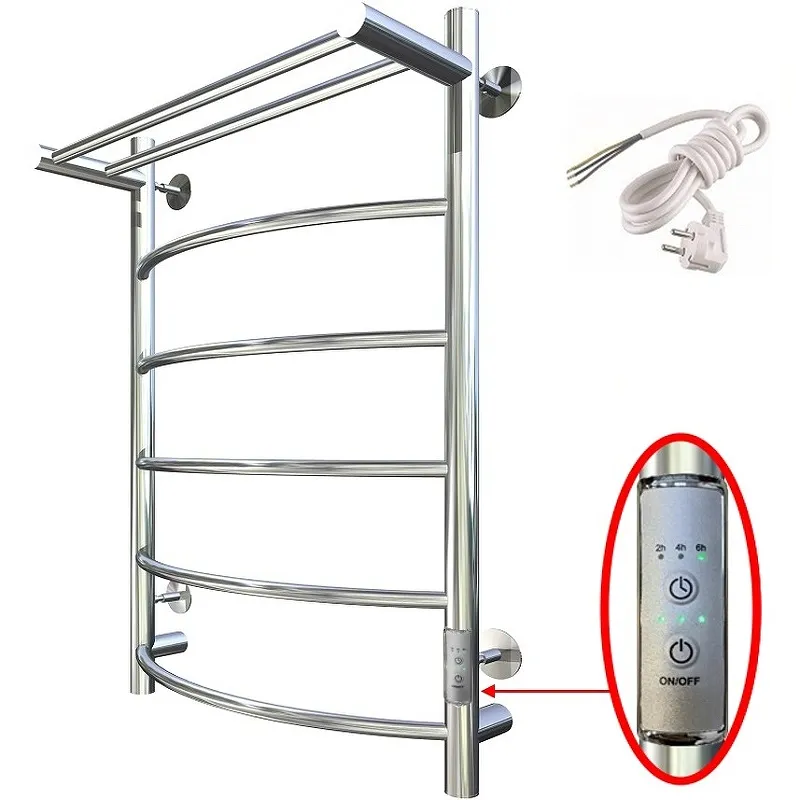 - Электрический полотенцесушитель с полочкой — удобное место для хранения и просушки.