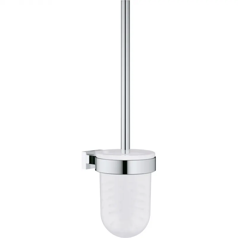 Ершик для унитаза Grohe Essentials Cube 40513001.Гармонично смотрится с различными предметами интерьера в современном стиле. Воплощает в себе высокие стандарты качества в сочетании с комфортом и функциональностью.Характеристики:Материал: латунь/стекло матовое.Цвет: хром.Простой монтаж, не требующий профессиональных навыков и знаний.В комплекте поставки: ершик, колба, держатель, крепеж.