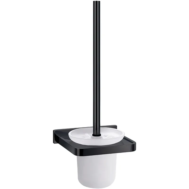 Ершик для унитаза Omnires Darling DA70620BL настенный.Характеристики: Цвет: черный. Материал: латунь, стекло матовое. Габариты (ШхВ): 13.2х38 см. Монтаж: настенный. Расстояние от стены: 13.7 см. В комплекте поставки: держатель; стакан; щетка; крепление.
