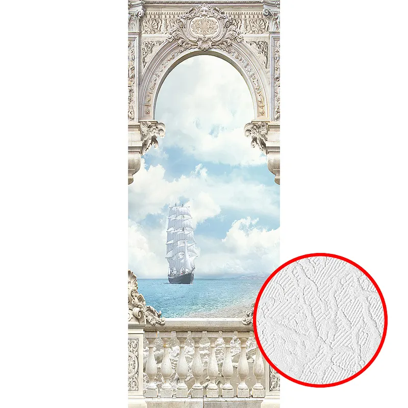 Фотообои Divino T-031 Фактура фреска Винил на флизелине (1*2,7) Бежевый/Голубой, Корабль