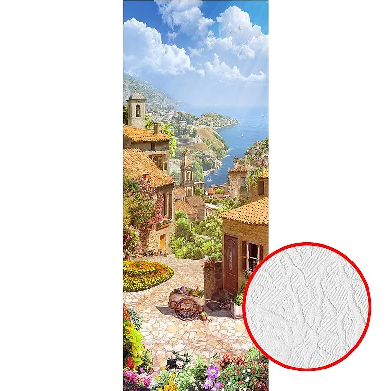 - Виниловые фотообои на флизелине размером 1*2,7 м с рисунком пейзаж.