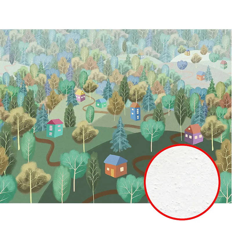 - Уникальный дизайн: Фреска с рисунками домиков и деревьев дополняет интерьер детской комнаты, создавая волшебное настроение.