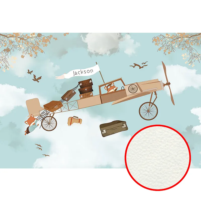 Фреска детская Ortograf Для малышей 30123 Фактура флок FLK Флизелин (4*2,7) Бирюзовый/Бежевый, Самолеты/Животные