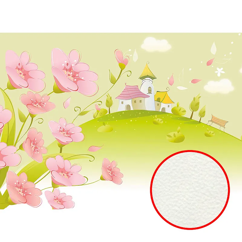 Фреска детская Ortograf Для малышей 33303 Фактура флок FLK Флизелин (3,7*2,7) Зеленый/Розовый, Домики/Цветы