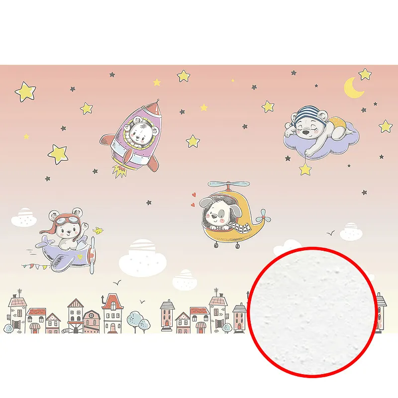 - Флизелиновая основа: Обеспечивает прочность и долговечность фрески, что особенно важно для детских комнат.