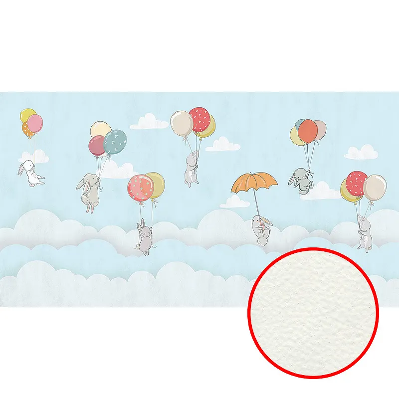 Фреска детская Ortograf Для самых маленьких 33709 Фактура флок FLK Флизелин (5*2,7) Голубой/Разноцветный, Животные/Воздушные шары/Облака