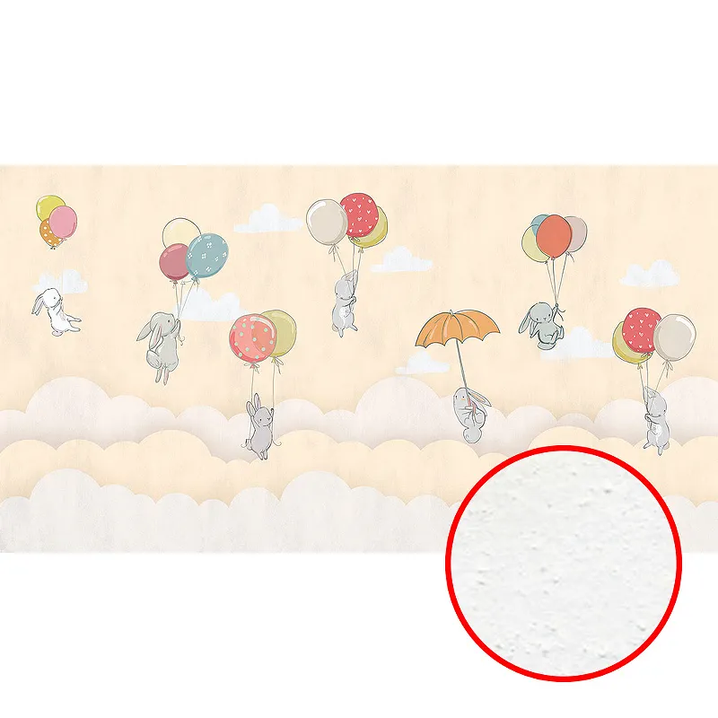 Фреска детская Ortograf Для самых маленьких 33711 Фактура бархат FX Флизелин (5*2,7) Бежевый/Разноцветный, Животные/Воздушные шары/Облака