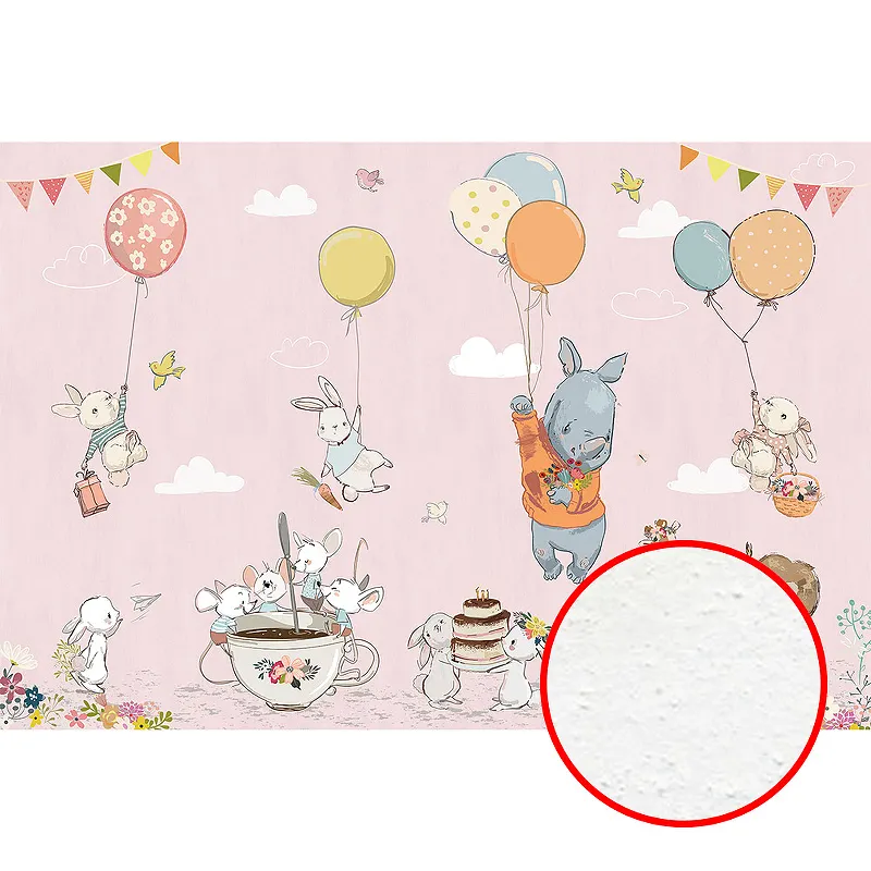 - Флизелиновая основа: Розовый/Разноцветный, Животные/Воздушные шары