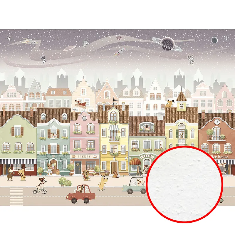 - Флизелиновая фреска для детской комнаты: создаёт уют и оригинальность в интерьере, обеспечивая долговечность и простоту ухода.