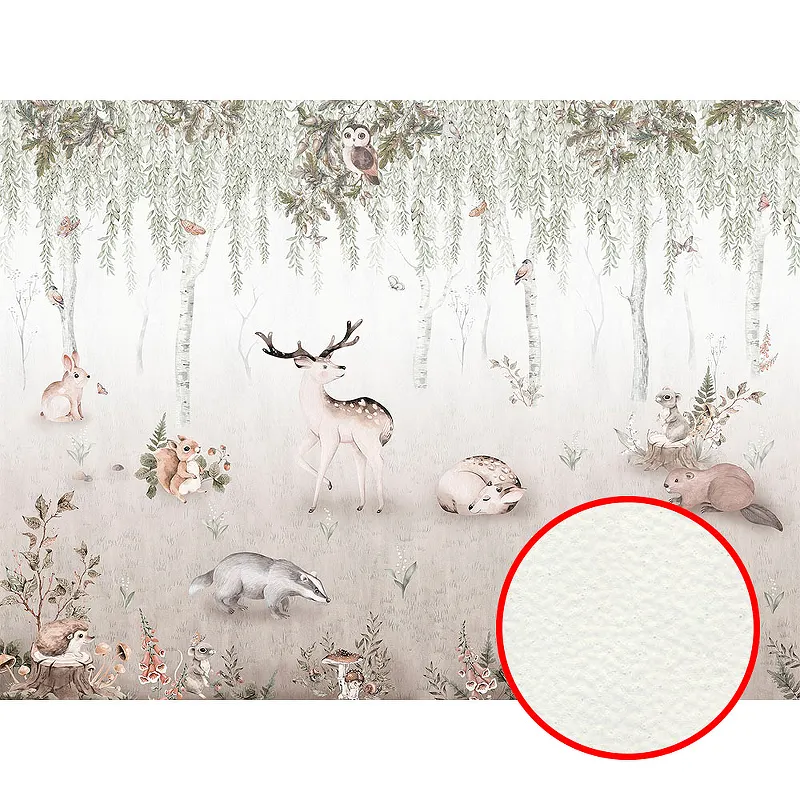 - Флизелиновая фреска с рисунком животных — добавляет яркость и радость в интерьер детской.