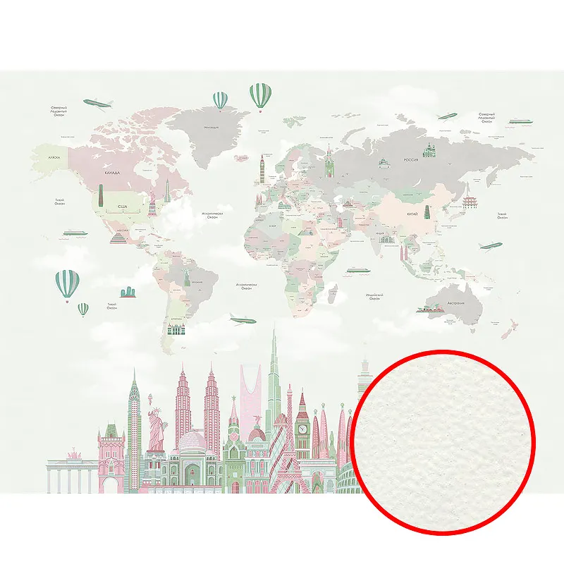 Фреска детская Ortograf Little Friends 34380 Фактура флок FLK Флизелин (4*3) Зеленый/Розовый, Карты/Город
