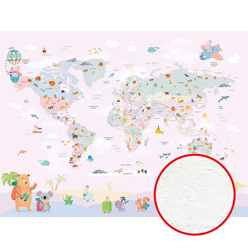 Фреска детская Ortograf Little Friends 34384 Фактура бархат FX Флизелин (4*3) Розовый/Разноцветный, Карты/Животные